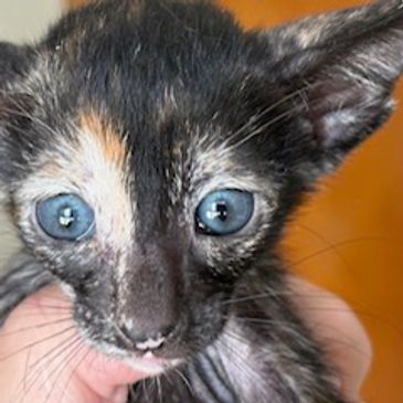 Beautiful and striking, this ebony tortie female OSH is looking for her forever home! She will be ready to go in about 8 weeks. Her eprsonality has not emerged yet, but, as a tortie, she should be very lively!