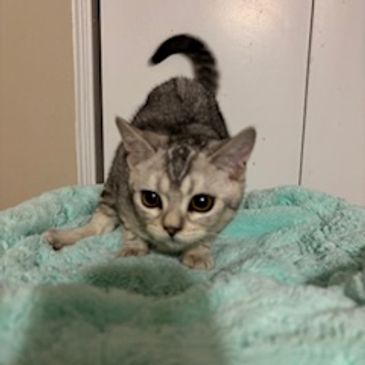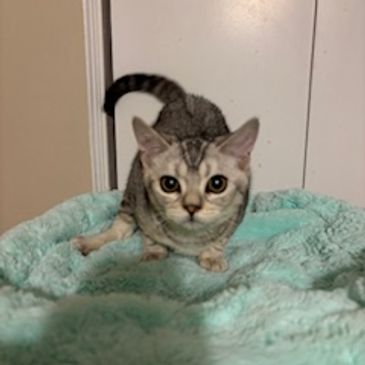 Silver Mac Tabby male, sweet, sweet, sweet! 8 months old. Recently neutered.