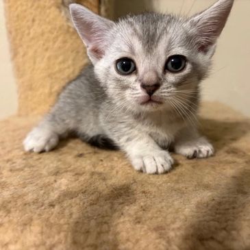 Very sweet shaded silver American Shorthair boy, ready in 11 weeks. Very playful with his siblings and very sweet!